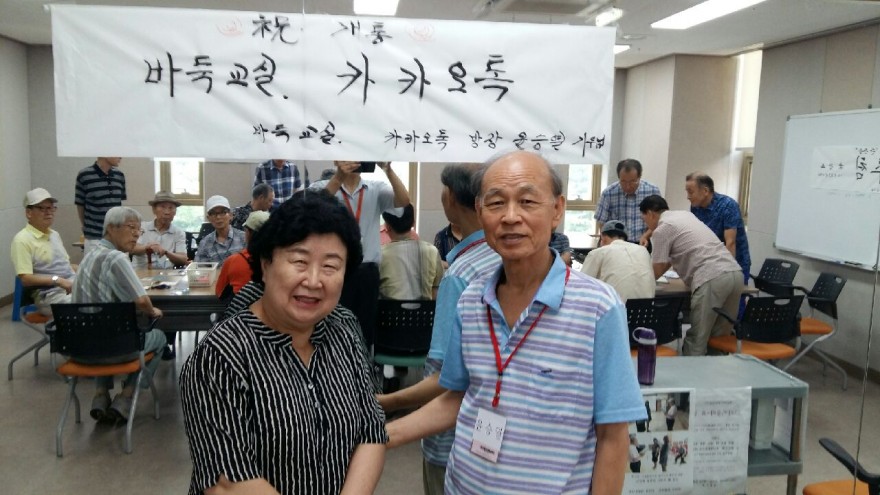 Paul 작성일사랑하는 아내(조옥현, 왕초보 수강생)가 단톡방(단체 카톡방) 개설을 위해 수고해 주었으니 감사하지요. 8/29(월) 현재 수강생 6명 중에 함께 배우는 부부가 3쌍, 그리고 혼자 배우시는 용감한 자매님이 3분이나 계십니다. 바둑실의 기존 기우님들 중에는 6급의 김여사님이 혼자 고군분투하고 계신데, 수강생들이 12월까지 잘 배워 바둑실에 들어가면 바둑실 분위기도 더 밝아지겠습니다.