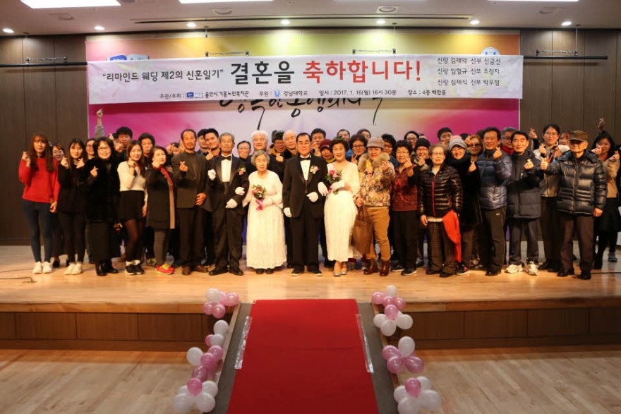 강남대학교 창의 실천 프로그램 공모전에 선정된 학생들이 직접 어르신들을 위해 준비한 리마인드웨딩이 진행되었습니다.