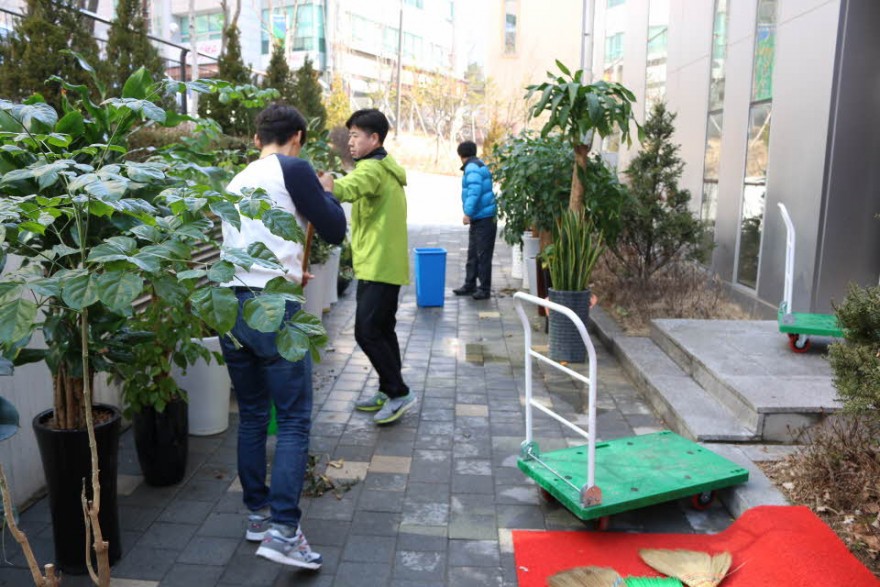 이날 국민은행 신갈지점은 지역복지 발전을 위한 후원금 전달식을 진행하였고, 복지관 층별 프로그램실 환경미화와 복지관 내 화분 물주기 등 자원봉사활동을 진행하였다.