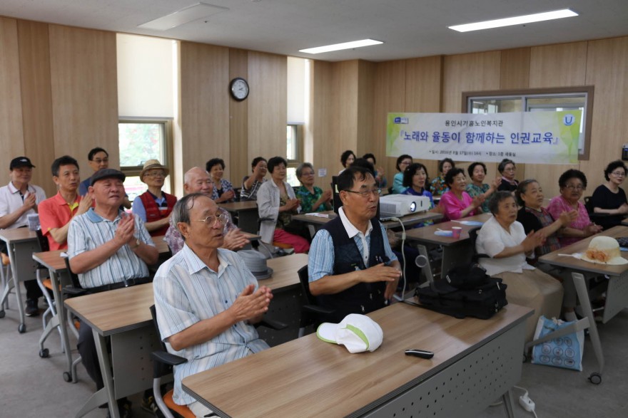 용인시기흥노인복지관은 지난 8월 17일(수) 인권이 사람의 행복한 삶을 만든다는 점을 인식시기키 위해 "노래와 율동이 함께하는 인권교육" 을 진행했다.