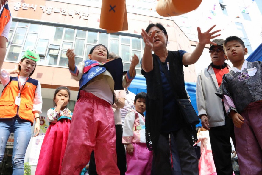 이날 행사는 총 150명이 참여했으며 복지관 인근 신갈어린이집, 시립 새그린어린이집 원아 60명과 복지관 이용 어르신이 60명, 자원봉사자 30명이 함께 송편 빚기, 전통놀이 체험(윳놀이, 투호놀이, 제기차기) 순으로 진행되었다.