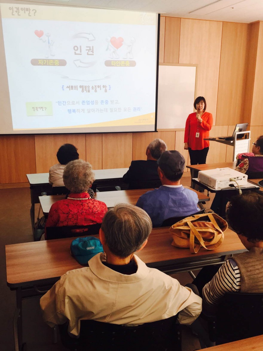 이번 교육은 노인 학대예방의 개념과 유형별 사례, 발생요인, 대처방법 등 노인 인권 강화에 실질적으로 필요한 내용들을 강의했다.