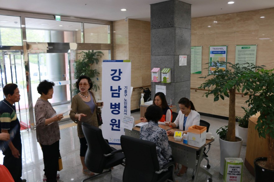 강남병원과 연계하여 무료진료 및 건강상담, 기초검사(혈당체크)서비스가 진행되었습니다.